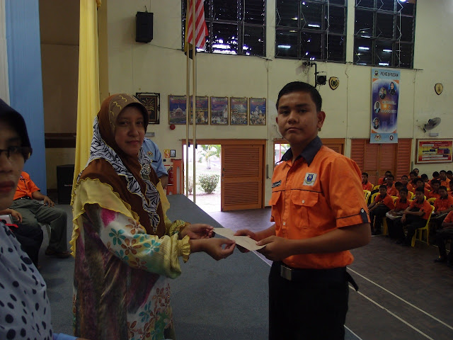 The monthly assembly was held this morning from 8.00 a.m. to 9.30 a.m. The teacher-in-charge was Puan Fatihah. Prizes for the best three classes in the Class Cleanliness contest for Form 5 and KV were presented to the class representatives by the director of KVSM. There were speeches by Puan Nor Amlina, Cikgu Zulkifli bin Ismail, Cikgu Wan Yusaini bin Wan Hassan and Puan Hajah Intan Suhana bt Kamarudin.